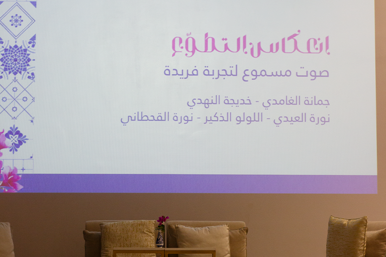 ابتدأ اللقاء بفقرة: لماذا أولًا، قدمتها أ. منـال البلوشي حول أهمّ الدوافع التي ينبغي لكلِّ مقبل على التطوع أن يستحضرها دائمًا، تلاها فقرة أ. دعاء القحطاني والتي شاركت رحلتها في التطوع بدءًا من أيامها في المرحلة الثانوية وصولًا إلى تخرجها من الجامعة.